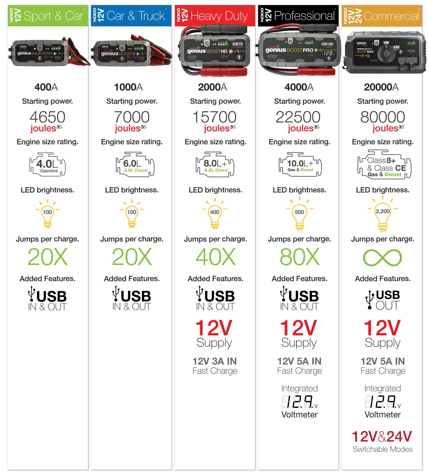 The GB20 is a portable lithium-ion battery jump starter pack that delivers 500-amps for jump starting a dead battery in seconds. It features a patented safety technology that provides spark-proof connections and reverse polarity protection making safe and easy for anyone to use. It's a powerful battery booster that doubles as a portable power source for recharging USB devices, like a smartphone, tablet and more. Designed for a car, boat, motorcycle, RV and more with gas engines up to 4 liters.